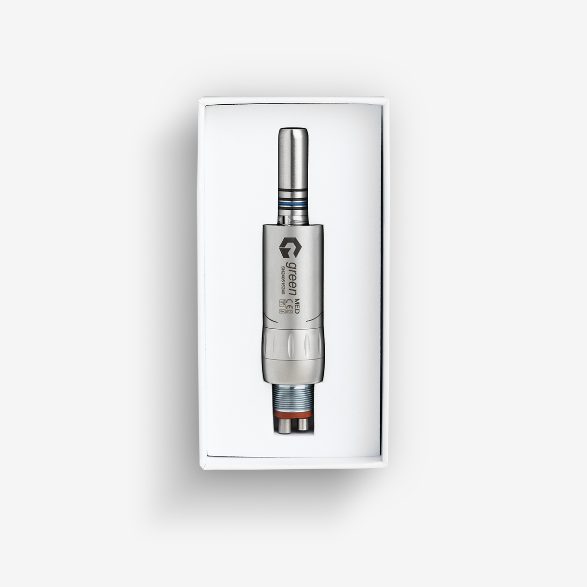 Пневматические двигатели Гринмед 1:2 обладают длительным сроком службы благодаря внутренней системе охлаждения. Она позволяет избежать перегрева и сохранить срок службы крутящего момента. Это необходимо, так как скорость вращения мотора составляет 60 000 оборотов в минуту. Её можно плавно регулировать, настраивая устройство под индивидуальные предпочтения, но это никак не повлияет на громкость работы.