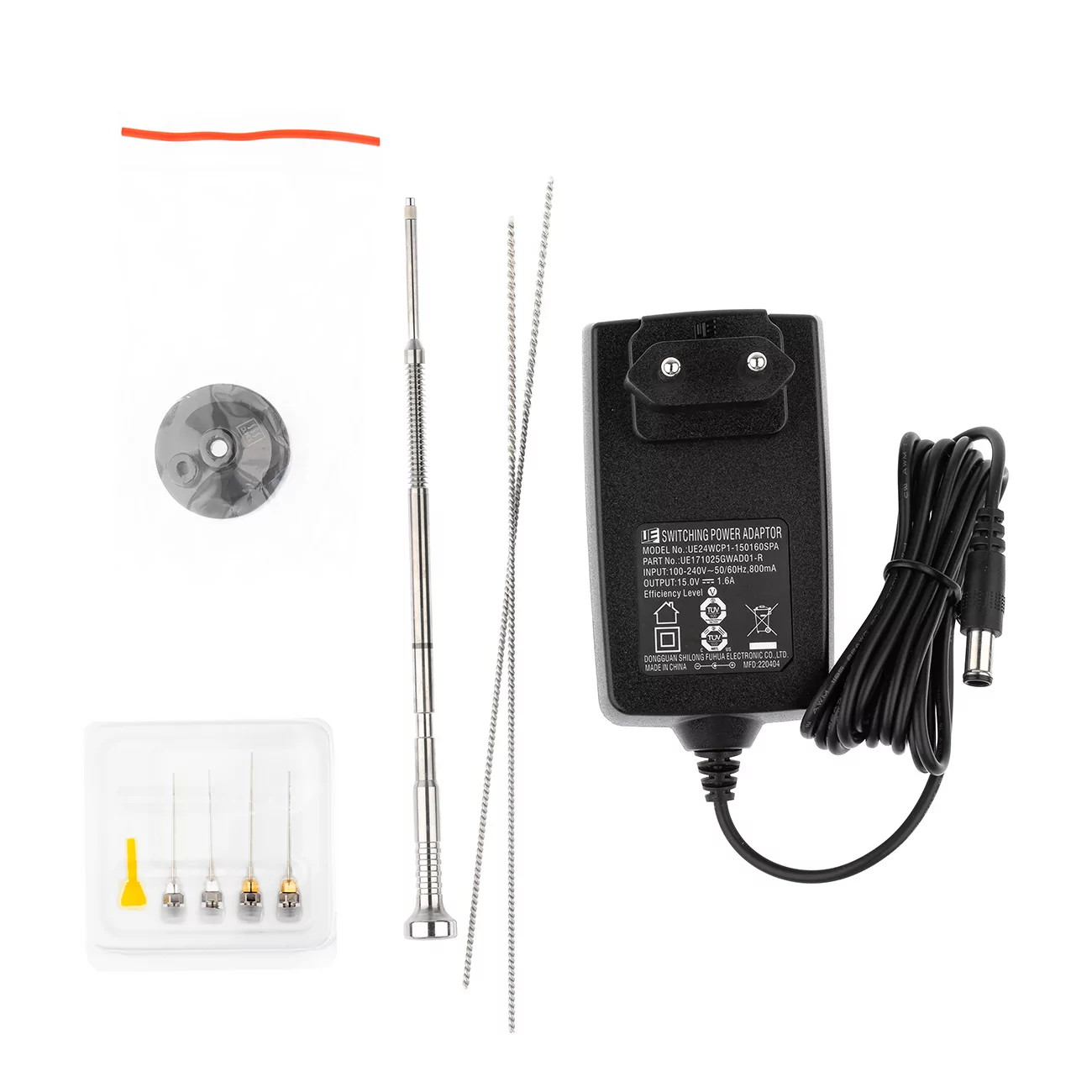 Инжектор DTE Fi-G — беспроводное эндодонтическое устройство для нагревания гуттаперчи и введения её в корневой канал через специальную канюлю, размер которой всего 0,5 мм. Это позволяет легко добраться до апикальной части канала.