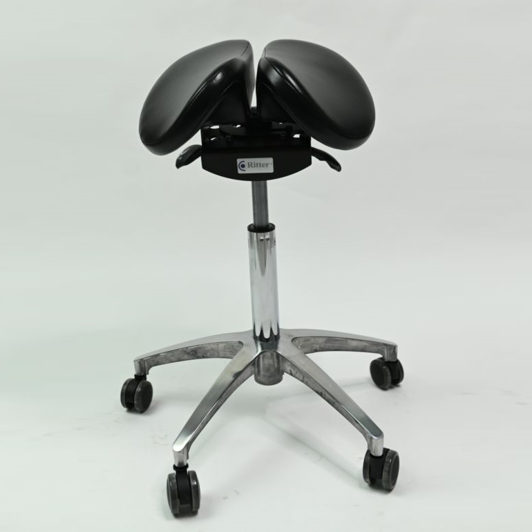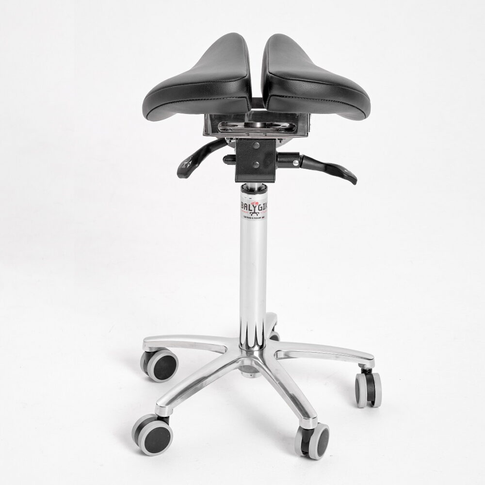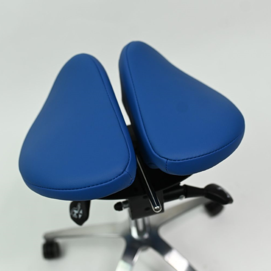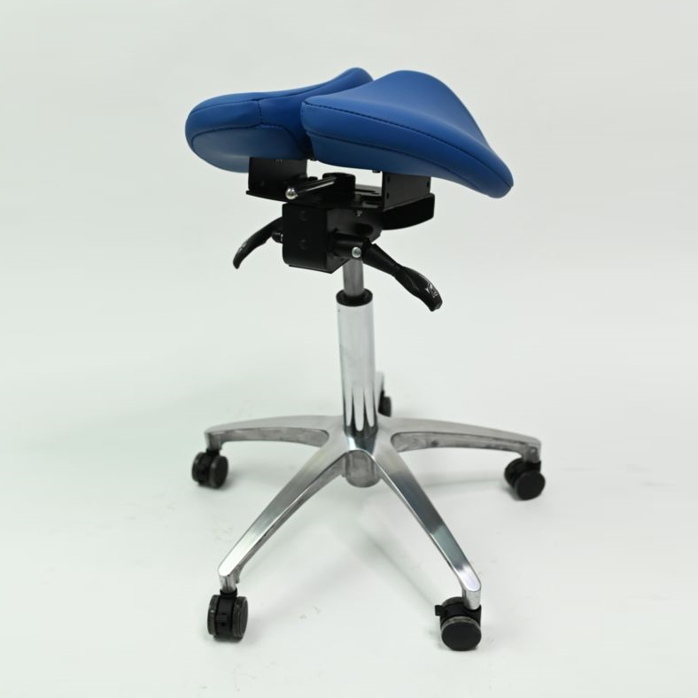 Высокий уровень комфорта стула незаменим в работе врача. Сиденье в форме «седла» из двух частей скорректирует и поддержит правильную осанку. Механизм регулировки сиденья позволяет менять угол наклона и даёт возможность раздвигать половинки сиденья.