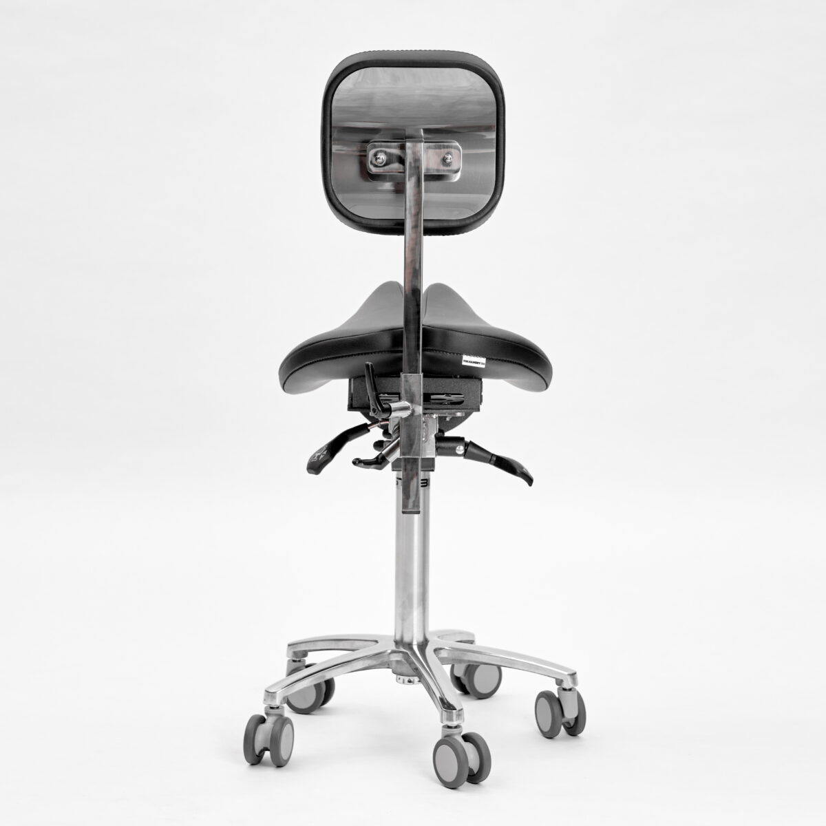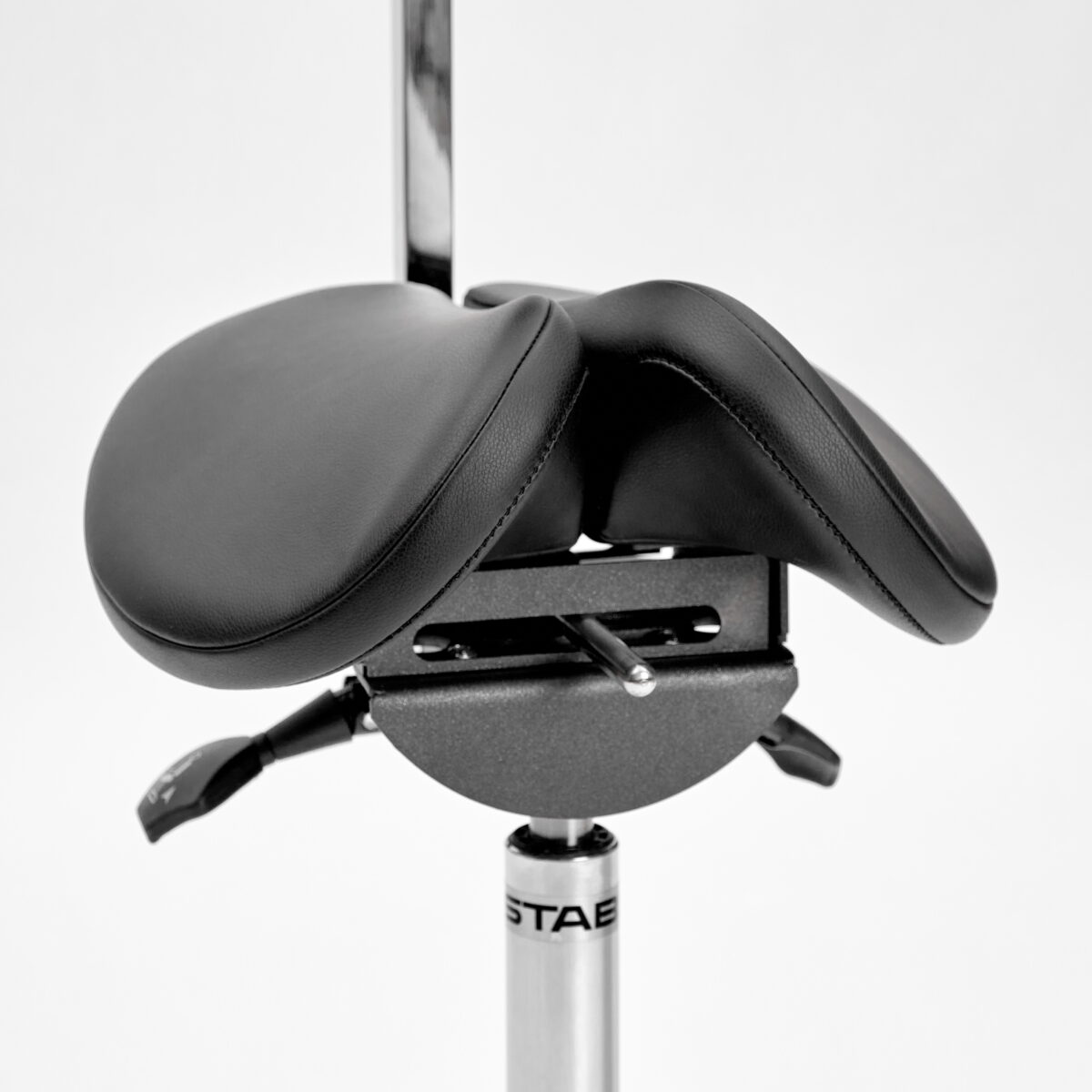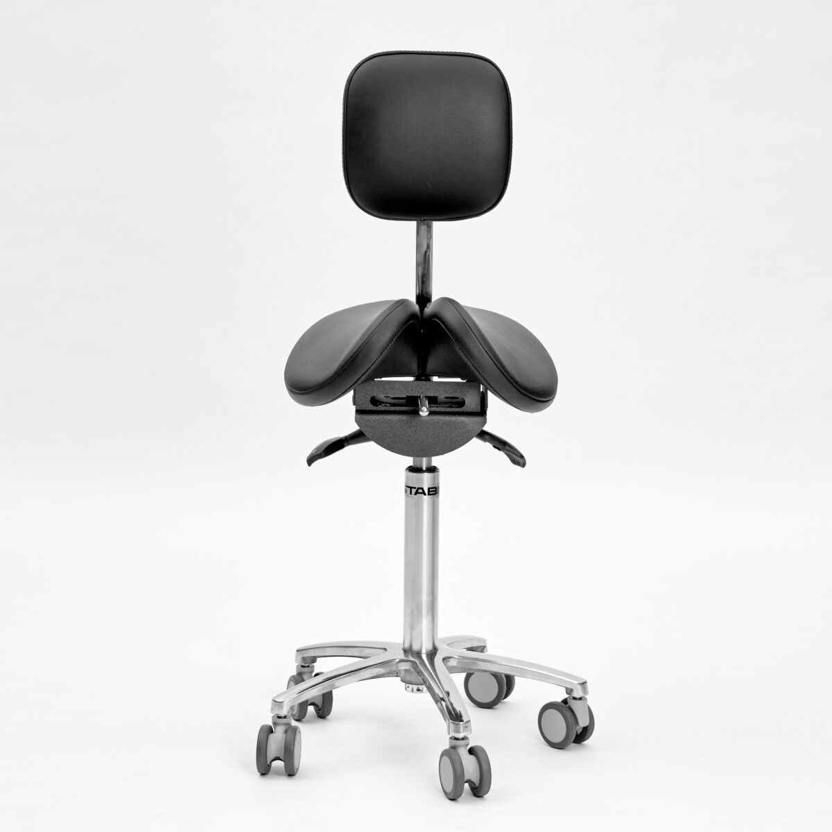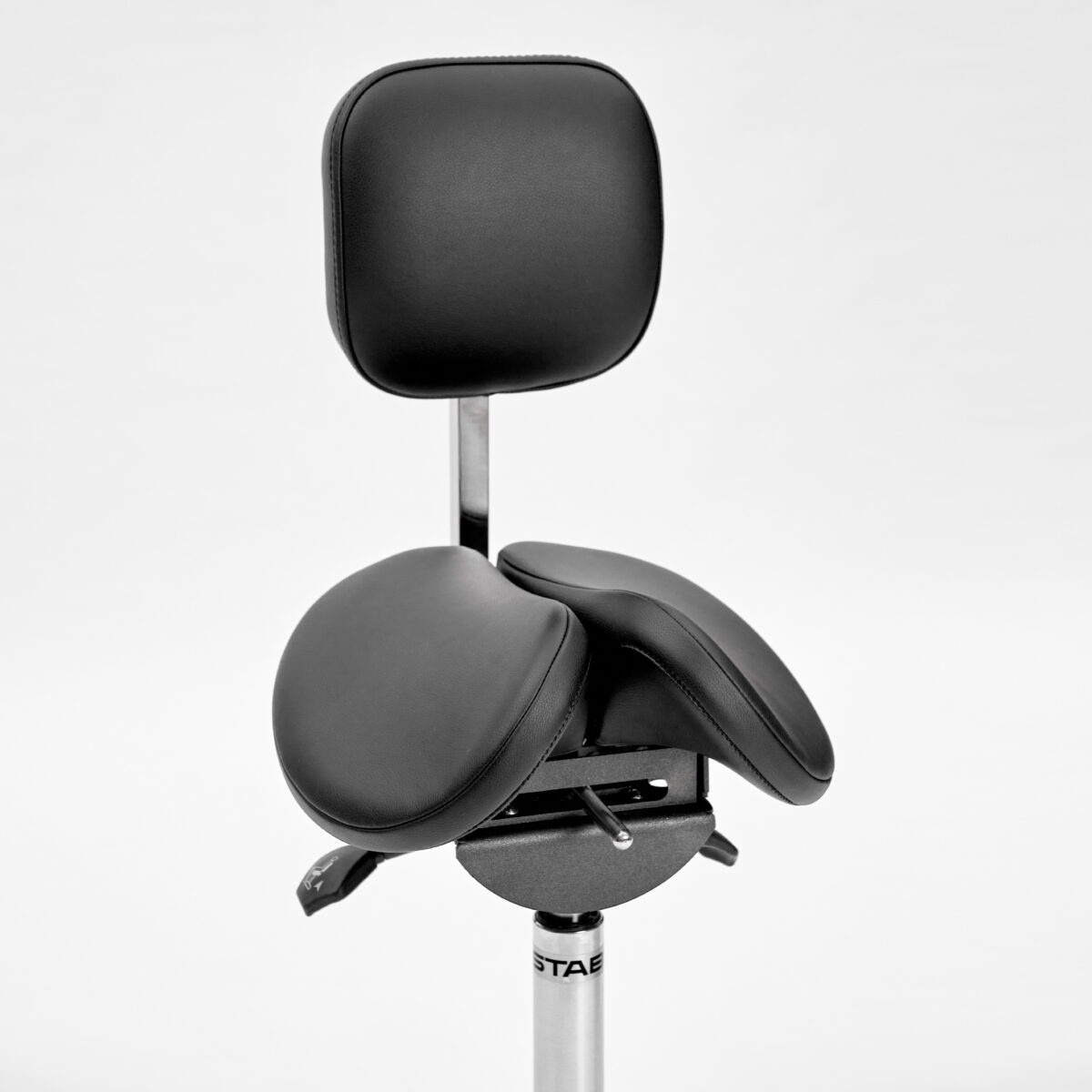 Помогает поддерживать правильную осанку и оптимально распределять нагрузку по телу для снижения усталости во время сидения. Регулируется высота стула, угол наклона сидения и расстояние между его половинками.