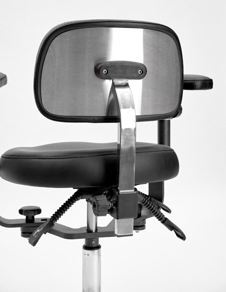 Стул обеспечивает поддержание рациональной рабочей позы при работе на микроскопе, позволяет изменять позу с целью снижения статического напряжения мышц шейно-плечевой области и спины.